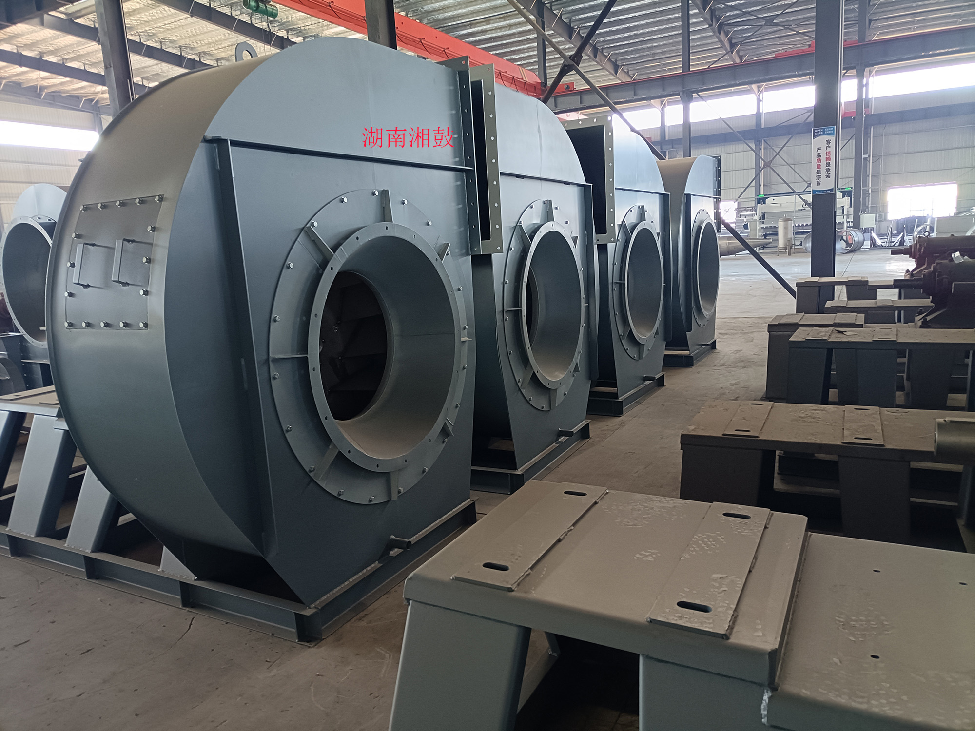 湖南湘鼓鼓風機制造有限公司(長沙第二風機廠)原廠建于1978年,機械部定點生產(chǎn)風機的企業(yè),原設有長沙地區(qū)風機檢測站。于2016年重組遷入湖南益陽。公司占地32畝,擁有各類主要加工檢測設備100余臺套,是目前湖南省具一定規(guī)模的鼓風機及配件制造廠家。現(xiàn)已生產(chǎn)離心式通風機(又稱離心風機)和羅茨鼓風機二大系列,按用途分為高溫風機、不銹鋼高溫風機、不銹鋼離心通風機、造紙通風機、襯膠防腐風機、除塵風機、脫硫塔風機、增壓風機、鍋爐風機、掃路車風機、貼陶瓷耐磨風機、窯爐風機(磚窯風機)、煤粉灰輸送風機、燃燒器助燃鼓風機、斜槽高壓風機、化鐵爐風機、造氣鼓風機、養(yǎng)殖增氧風機污水處理曝氣鼓風機、脫硫氧化鼓風機氣力輸送鼓風機、印刷送風機電鍍槽鼓風機等三十多個系列通用型及十多個系列特種型風機,按國標型號分:4-72,T4-72,4-68,4-79,9-19,9-26,8-09,9-12,C6-48,C6-46,C4-73,GY4-68,GY4-73,GY6-51,GY8-39,GY9-38,GY6-30,GY6-48,GY6-41,GY5-51,GY5-47,GY5-48,GD30K2-12,以及XG80-500口徑的羅茨鼓風機。更多產(chǎn)品詳細介紹在首頁菜單檔上的產(chǎn)品中心    http://www.cshfhb.com/pclass/?classa=1